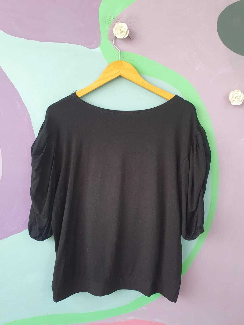 blusa em malha elástica encorpada com mangas bufante