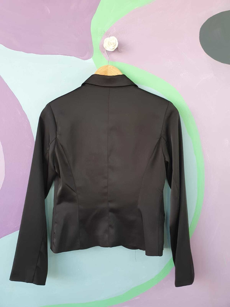 Blazer justinho em tecido com acabamento cetim, possui forro
