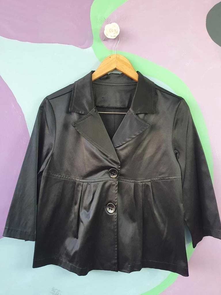 Casaqueto em tecido de algodão elastano com toque acetinado, possui manga 3/4, busto ajustado e cintura soltinha