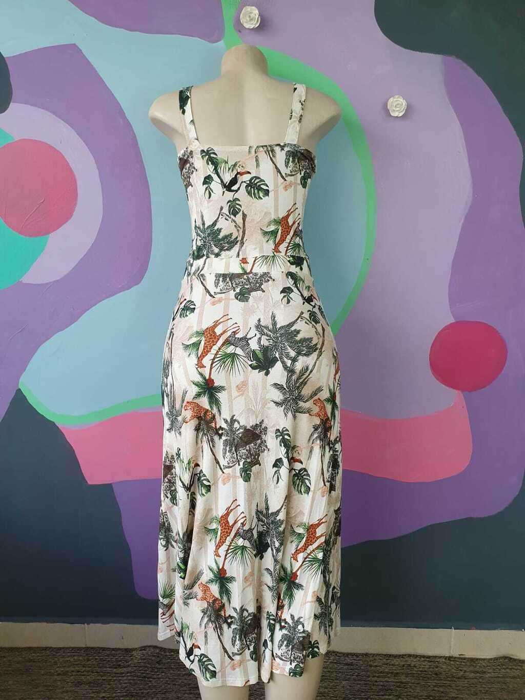 Vestido em malha macia com recortes vazados na cintura e comprimento midi, possui forro