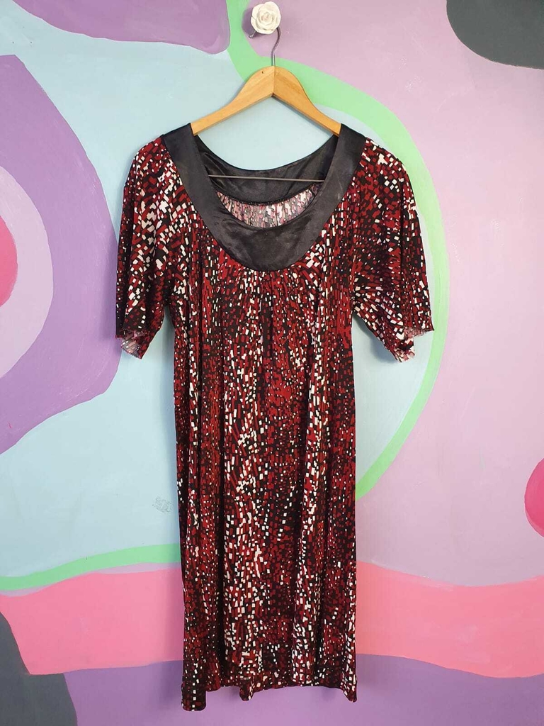 Vestido todo soltinho em malha fria sem forro, golinha de tecido acetinado preto